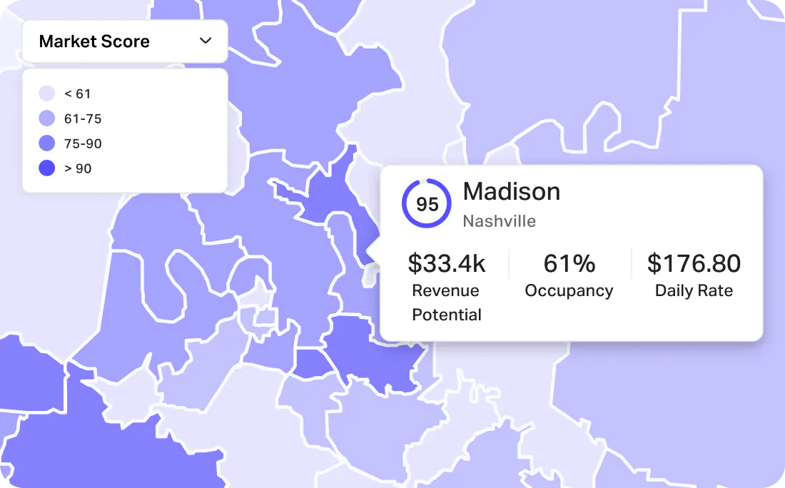Find areas with the strongest growth and investment potential and spot emerging submarkets before they become oversaturated with vacation rentals.